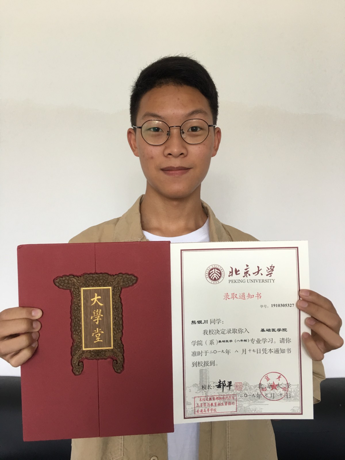 熊银川 2019年考入北京大学