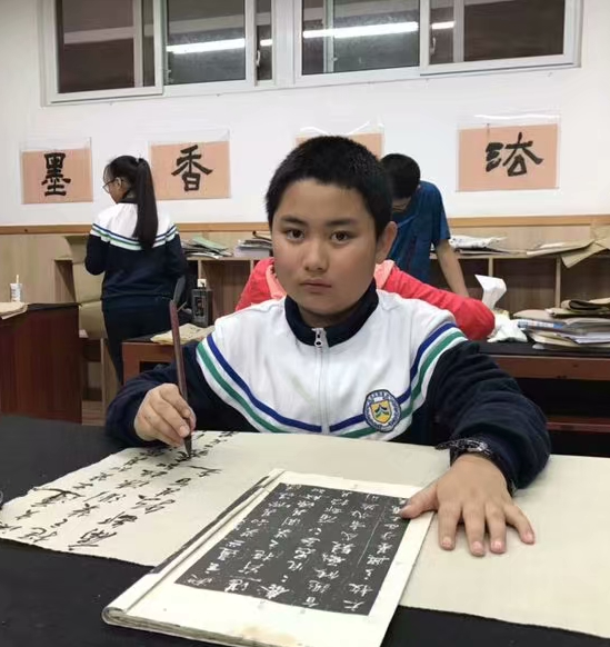在一次次反复的书写练习中,磨练了他急躁、冲动的情绪弱点。在传统文化的熏陶和滋养下,增加了他的人文积淀,培养了他的人文情怀,更健全了他的人性品格。在面对质疑、肯定、赞许的过程中,他也赢得了认同,收获了自信,汲取了养分,锤炼了品性。